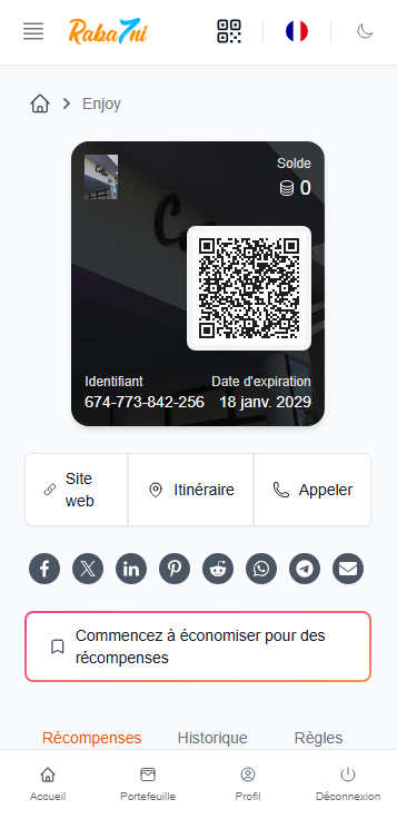 La carte de fidélité du commerce est automatiquement ajoutée à votre portefeuille digital après votre inscription.