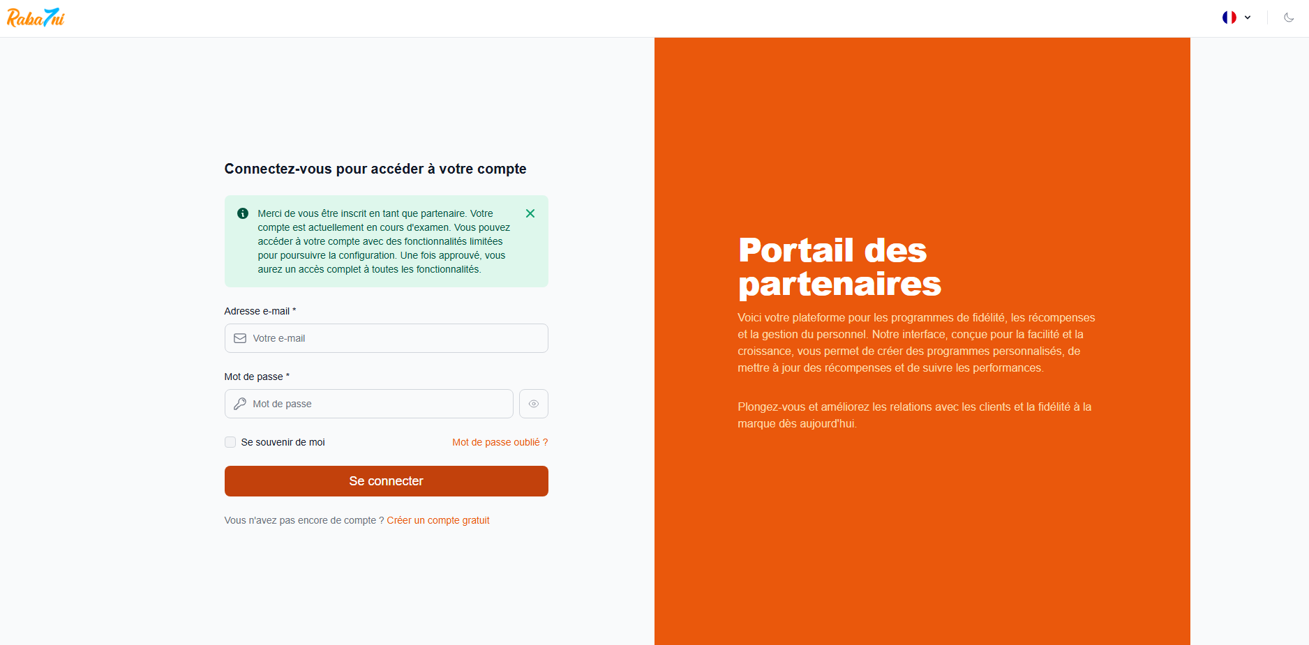 Accédez à votre tableau de bord partenaire avec vos identifiants pour gérer votre programme de fidélité.